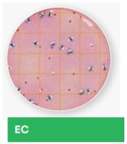 Wskaźniki znajdujące się na płytce barwią kolonie E.coli na kolor niebieski a kolonie bakterii z grupy coli na czerwono. Jednocześnie górna warstwa płytki przytrzymuje powstające podczas hodowli pęcherzyki gazu.